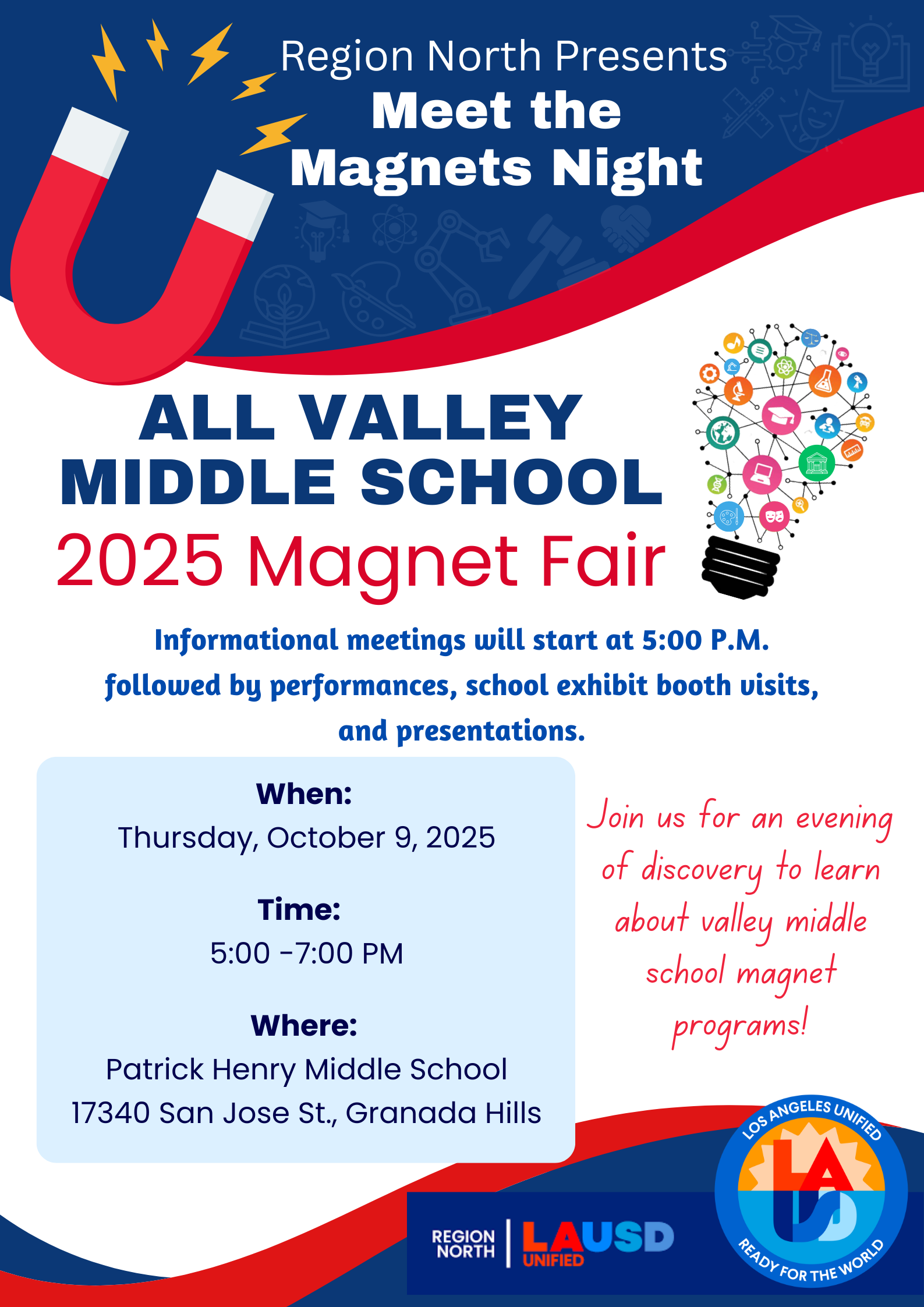 Learn about the exciting Magnet Programs at Middle Schools in the Valley. Explore innovative learning opportunities, meet program coordinators, and find out how your student can benefit from the unique academic pathways.
